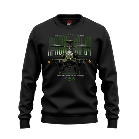 Wejdź w świat mocy i precyzji z naszą militarną bluzą bez kaptura, inspirowaną legendarnym śmigłowcem Apache AH-64!