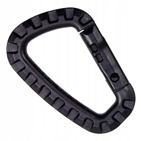 - Lekki i wytrzymały karabinek firmy Fosco, służący do montażu elementów oporządzenia na kamizelce, plecaku, panelu lub przy pasie. Ten wykonany z wytrzymałego pol