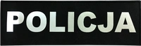 Odblaskowy napis POLICJA posiadający certyfikat widoczności z 2 kilometrów