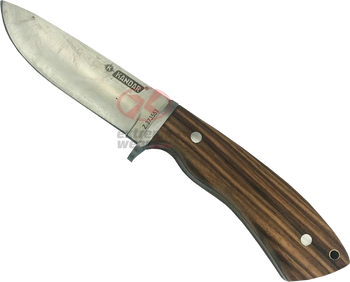 bardzo trwały, wykonany z wysokowęglowej stali Sandvik 12C27 zahartowanej do twardości 56-58HRC, o grubości głowni: 2 mm