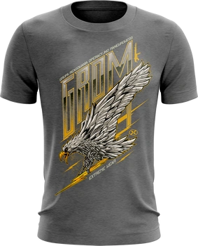 -szczegółowa grafika na przodzie oraz mniejsza na karku koszulki, pełna detali.