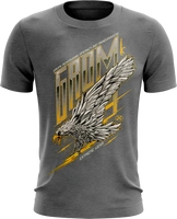 -szczegółowa grafika na przodzie koszulki, pełna detali oraz mniejsza aplikacja na karku.