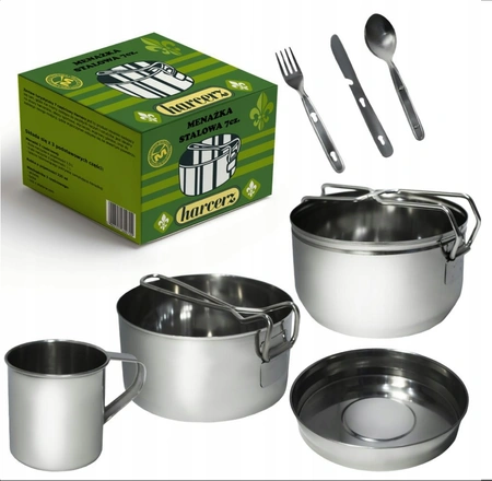 MENAŻKA HARCERSKA TURYSTYCZNA OBIADOWA STALOWA MOROWO HARCERZ 7 CZĘŚCIOWA